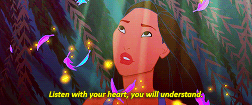 Remember Grandmother Willow from Pocahontas? When Pocahontas approached her in distress and asked her for her advice, what did she say to Pocahontas: Listen with your heart.